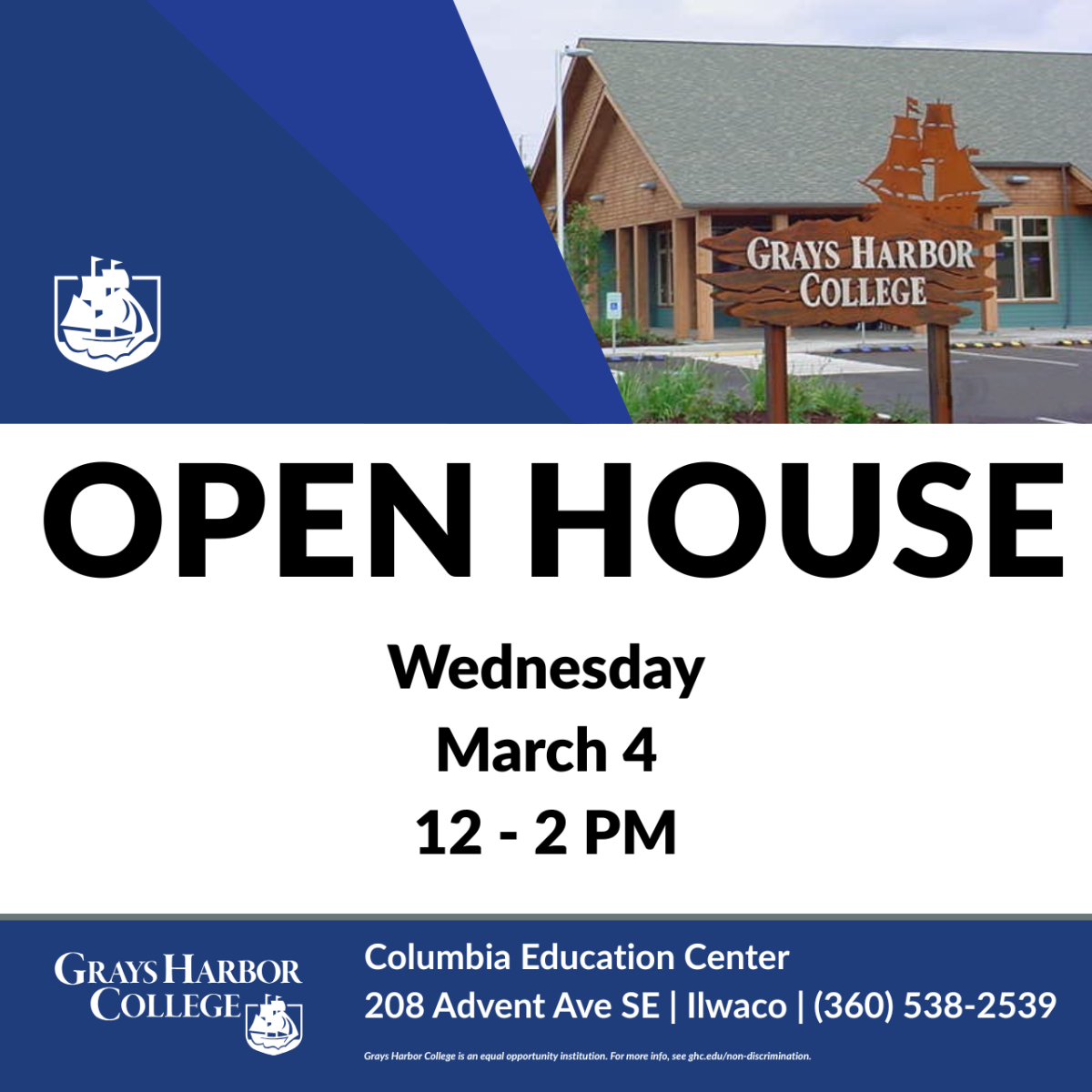 Please join us for an Open House at the Columbia Education Center in Ilwaco on March 4th, 12:00pm to 2:00pm! We’ll be sharing information about expanded programming coming to Ilwaco in Spring quarter and beyond. Meet with Grays Harbor College President Dr. Carli Schiffner, members of the Administrative leadership team, and staff at the Columbia Education Center in Ilwaco.