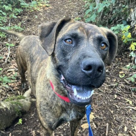 The Featured Pet of the Week for the Clatsop County Animal Shelter is KASHI, a four year old female Brindle black mouth Cur blend. She is learning to walk with a gentle leader because she can get excited when she sees other dogs but walks well on a lead otherwise.