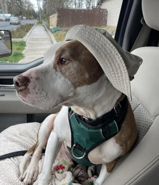Moose is the perfect balance of calm and playful. He loves walks, tug-of-war, belly rubs, and lounging in the sunshine. Throw a ball and he’ll happily chase it, then settle in for snuggles. He’s incredibly affectionate and thrives on being close to his people.