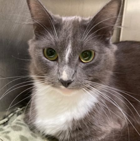 Meet Isabelle, a gentle gray and white tuxedo beauty with the cutest little nose stripe that makes her truly one of a kind. Petite and dainty, Isabelle has a soft, sweet nature that shines through in everything she does. She loves to play with her toys, stretch out in cozy spots, and show off her affectionate side with gentle nuzzles.