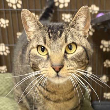 Bruno is a striking tabby with a big personality and an even bigger heart. At just over three years old and a solid 12 pounds, this handsome boy is full of life, curiosity, and charm. Whether he’s exploring his surroundings, chasing a toy, or simply keeping a watchful eye on his people, Bruno brings an energy that’s both lively and endearing.