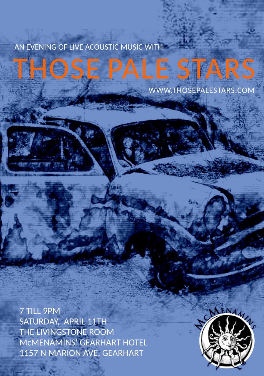 Astoria’s Those Pale Stars return to the Livingstone Room at McMenamins’ Gearhart Hotel for an evening of upbeat, thought-provoking original songs with maybe a few covers thrown in for good measure.
